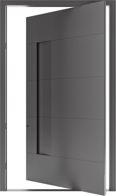 The PIVOT 02 model, with an innovative opening system, is sure to meet the expectations of the most demanding customers. The design of this aluminum infill, decorated with horizontal, regular milling, is mainly based on the broken plane of the panel, which passes discreetly into a recess that is an integrated door handle.